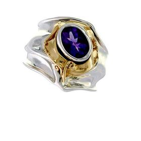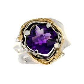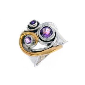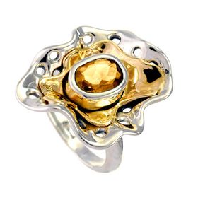 925 Silver & 14k Yellow Gold Ring with Gemstone