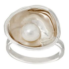Silver & Gold Ring with white pearl