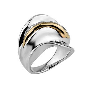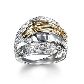 925 Silver and 14k Yellow Gold Ring Plain