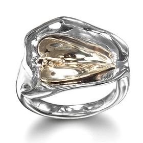 925 Silver and 14k Yellow Gold Ring Plain