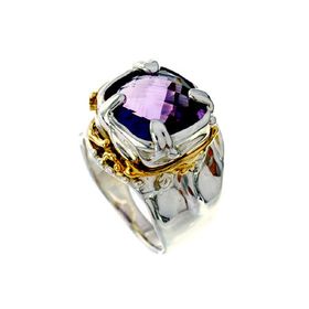 925 Silver and 14k Yellow Gold Ring with Gemstone