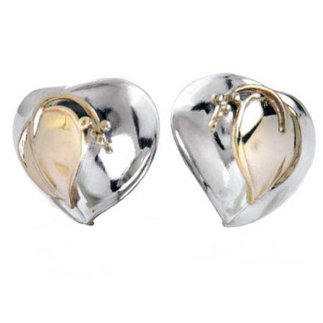D390 925 Silver & 14k Yellow Gold Earrings Plain