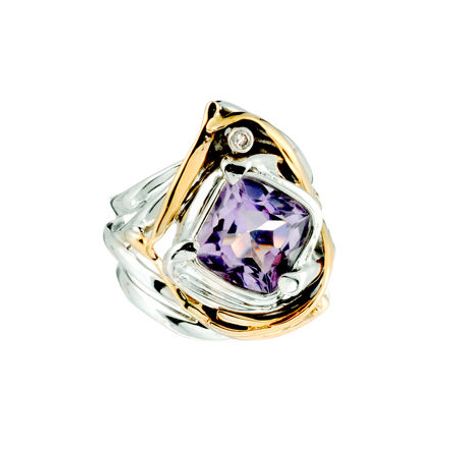 E418-AM 925 Silver & 14k Yellow Gold Ring with Gemstone & Diamond