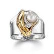 A156-WHT 925 Silver & 14k Yellow Gold Ring with Pearl & Diamond