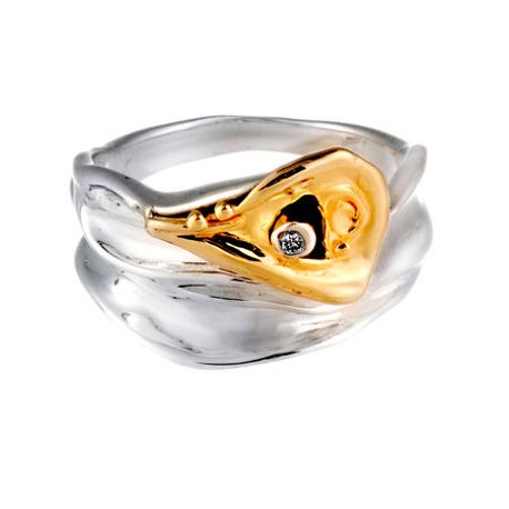 G179 925 Silver and 14k Yellow Gold Ring with Diamond